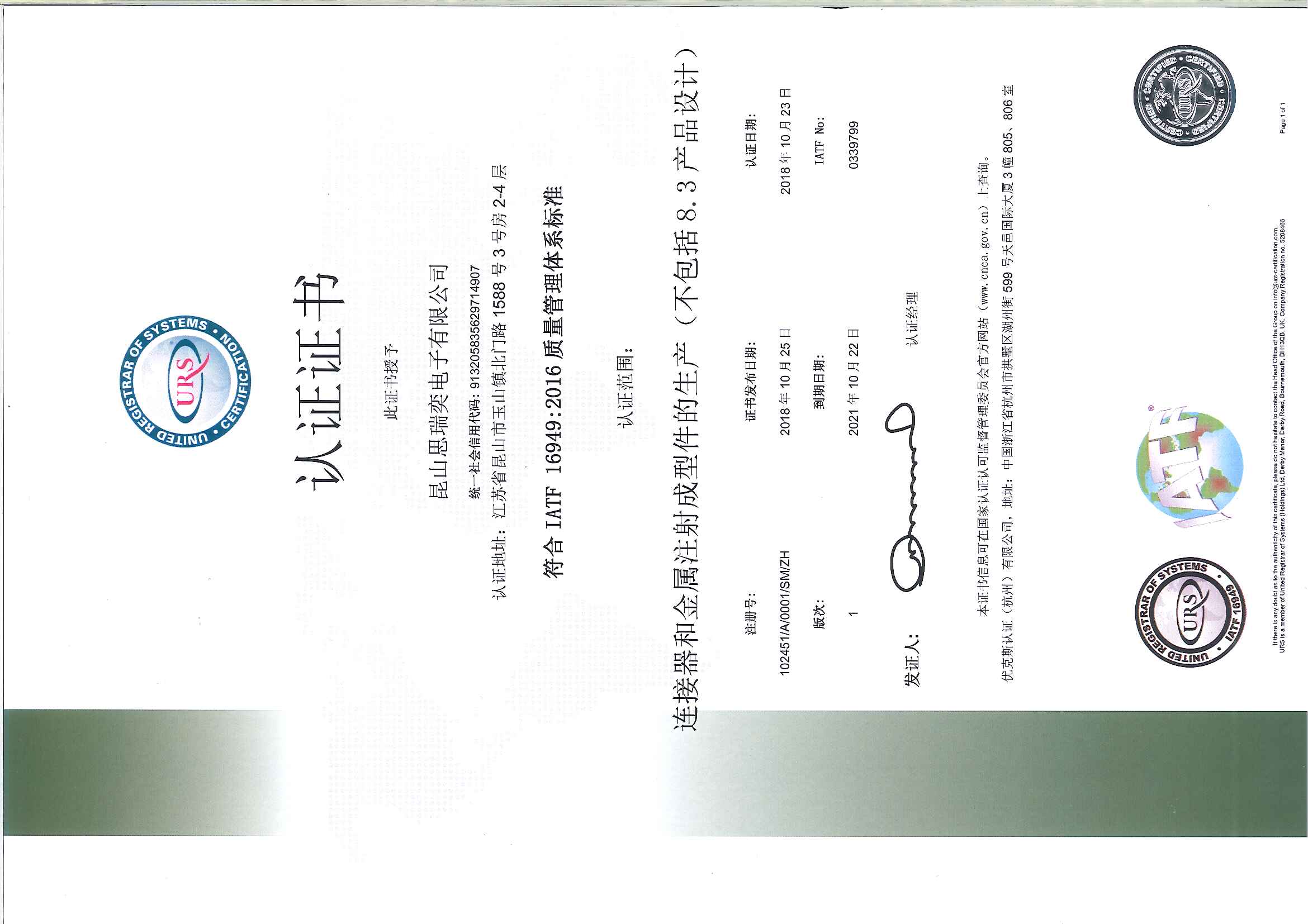 思瑞奕電子有限公司成立于2010年10月,注冊資金7500萬人民幣,總部位于江蘇省昆山市,在重慶、江蘇東臺、江蘇太倉設有分廠,公司于2011年通過ISO9001/ISO14001認證,2013年通過高新技術企業和TS16949(IATF)體系認定,2016年先后通過知識產權管理體系認證、安全生產標準化認證,2017年獲頒江蘇省民營科技企業、2018年先后獲得蘇州市人民政府認定企業技術中心、科技部認定中小型科技企業、江蘇省最具成長性高科技企業、2020年獲得江蘇省人民政府認定企業技術中心、2021年獲得蘇州市瞪羚計劃入庫企業、江蘇省省級工程技術研究中心、江蘇省專精特新中小企業等榮譽稱號......